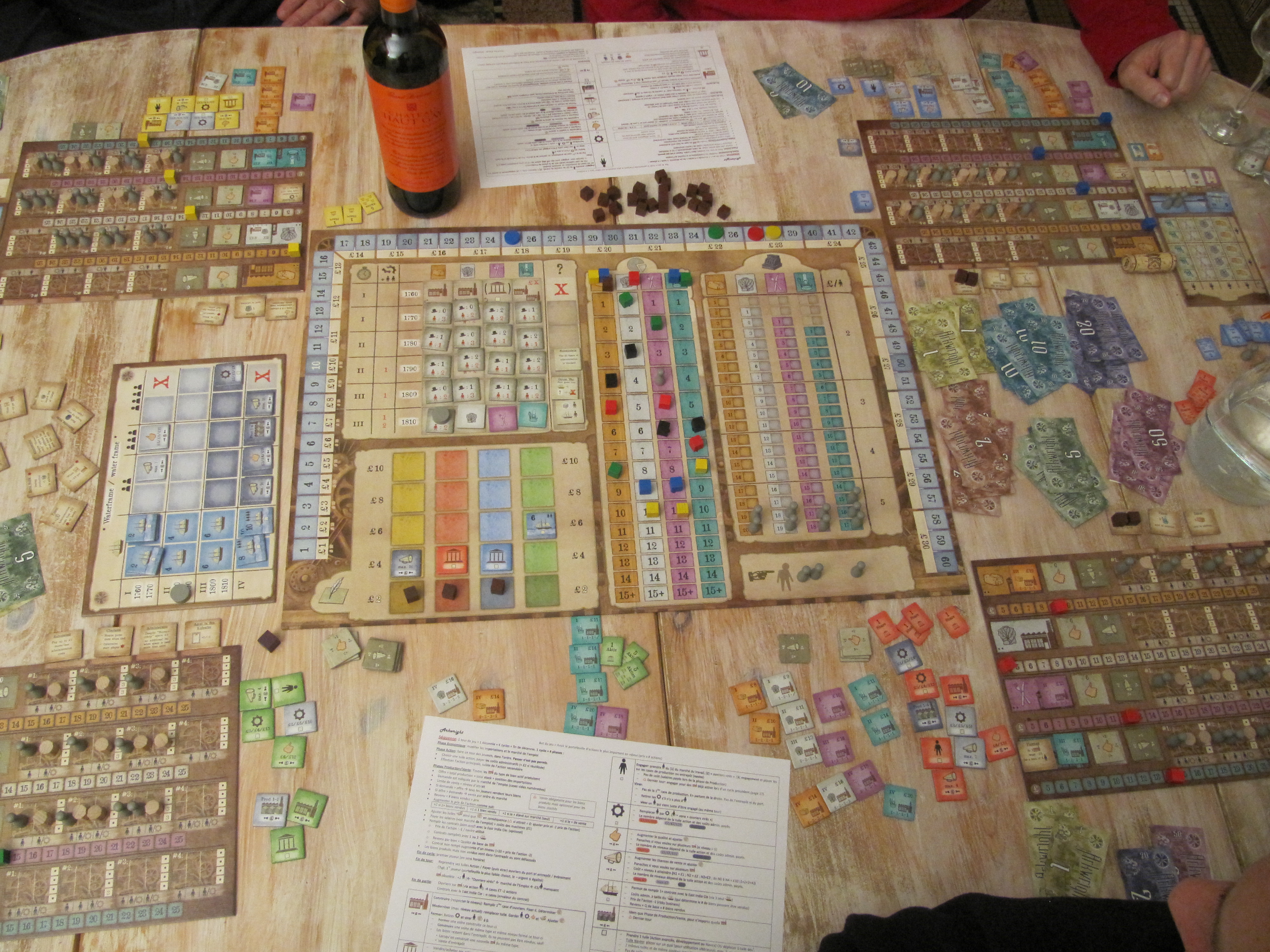 Le tableau est malheureusement un peu terni par la durée excessive de la partie. La première partie à 4 joueurs (incluant les règles) a demandé 7 heures. Ce jeu est donc strictement réservé aux motivés qui ont le temps ! Le jeu idéal pourrait être un Arkwright Light, qui réduirait un peu la complexité et la durée, mais qui donnerait la même immersion et le même réalisme (la même logique) dans les effets des actions.