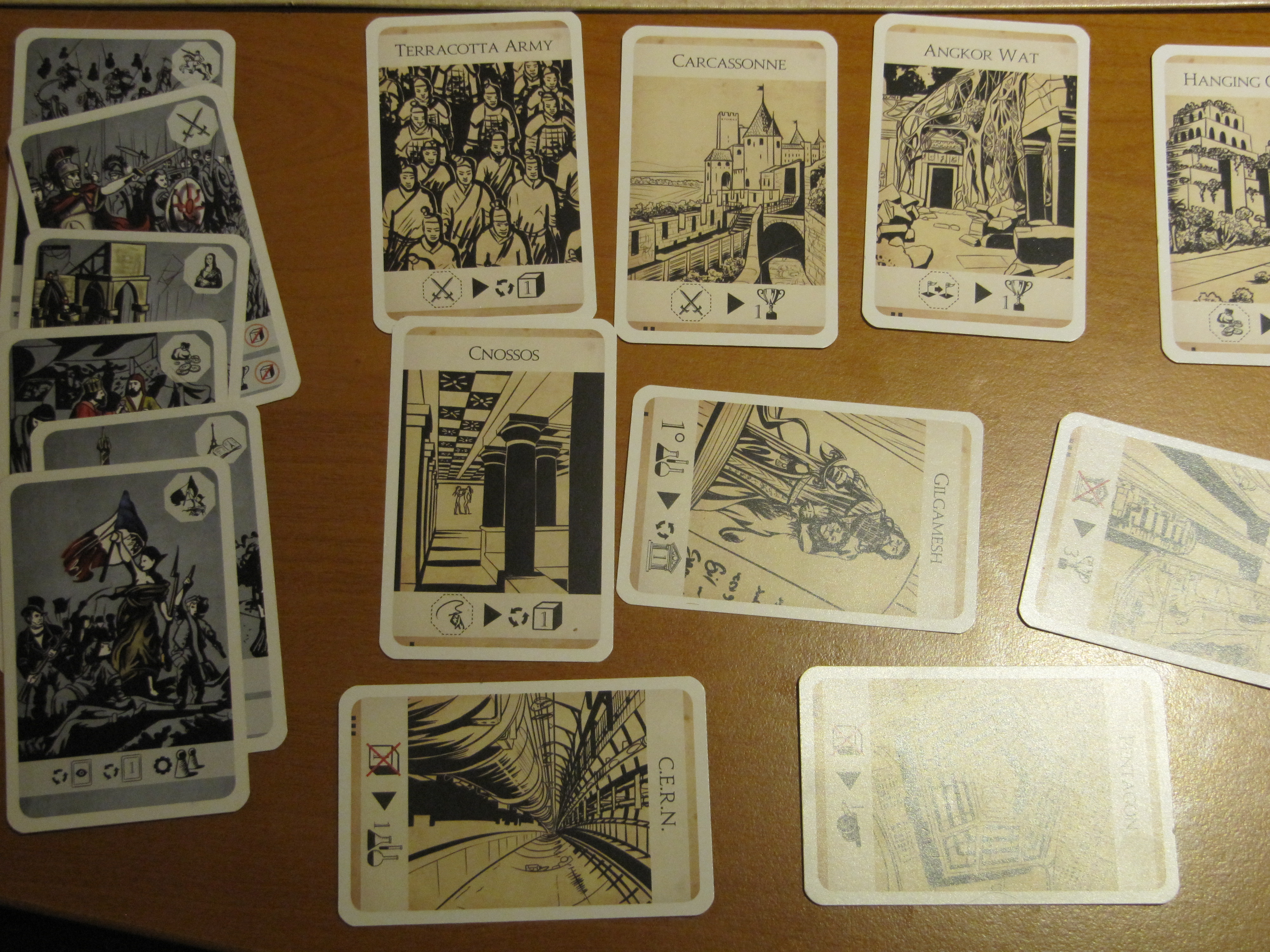 – Une fois tous les 2 tours, on rafraichit les cartes merveilles disponibles à l’achat. Ces cartes donnent des petits bonus intéressants en cours de partie.