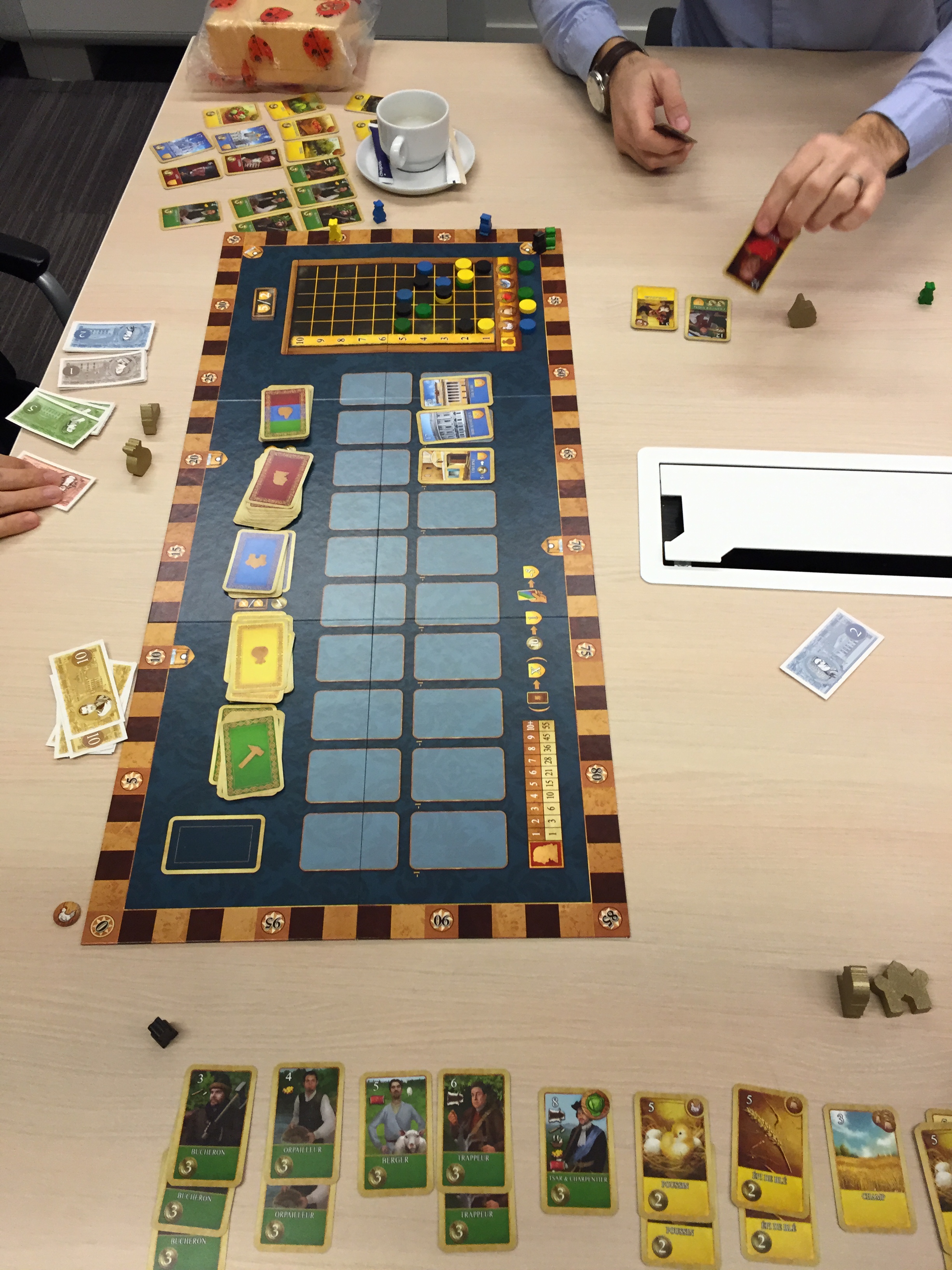 Personnellement, j’aime joué avec la version de base et les cartes « Marchés ». Le matériel est correct quoique le plateau a un fond un peu « austère » à mon goût.