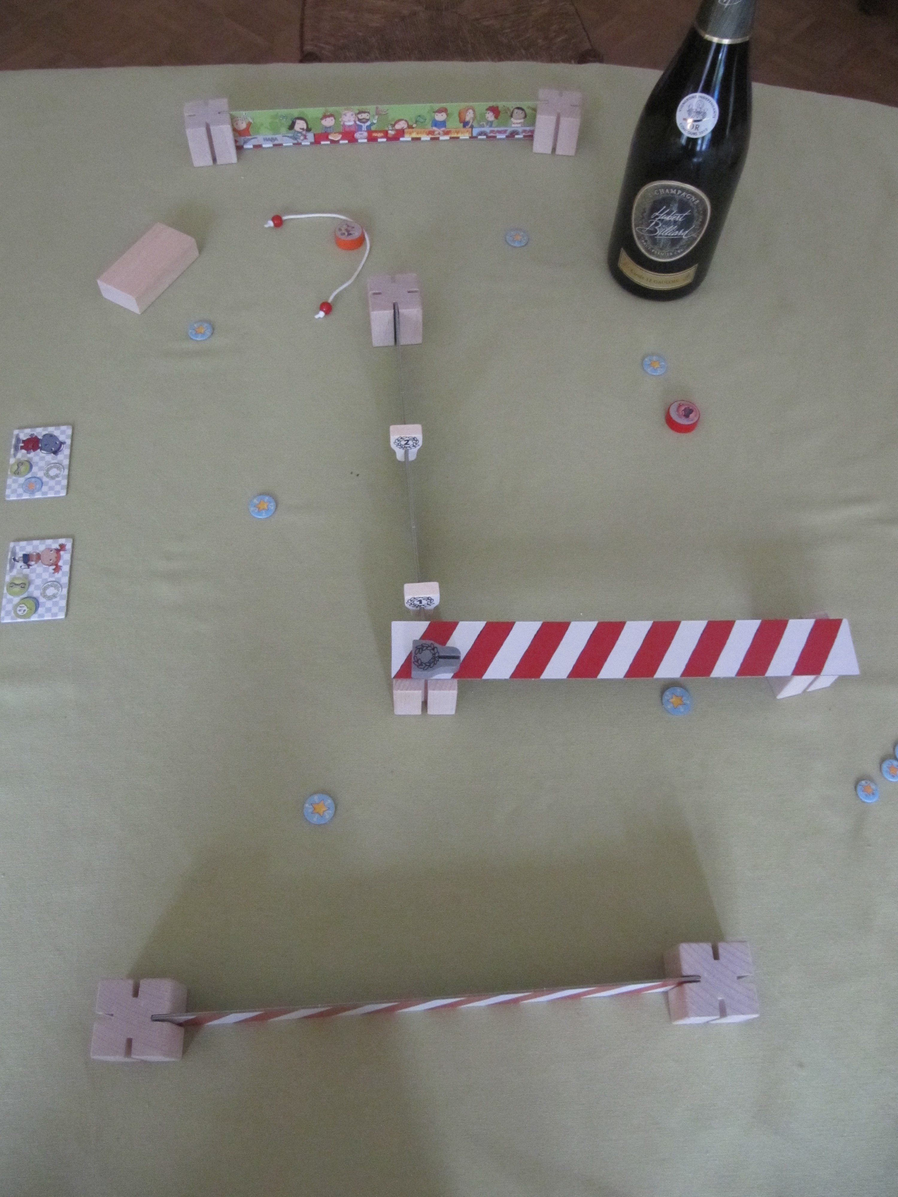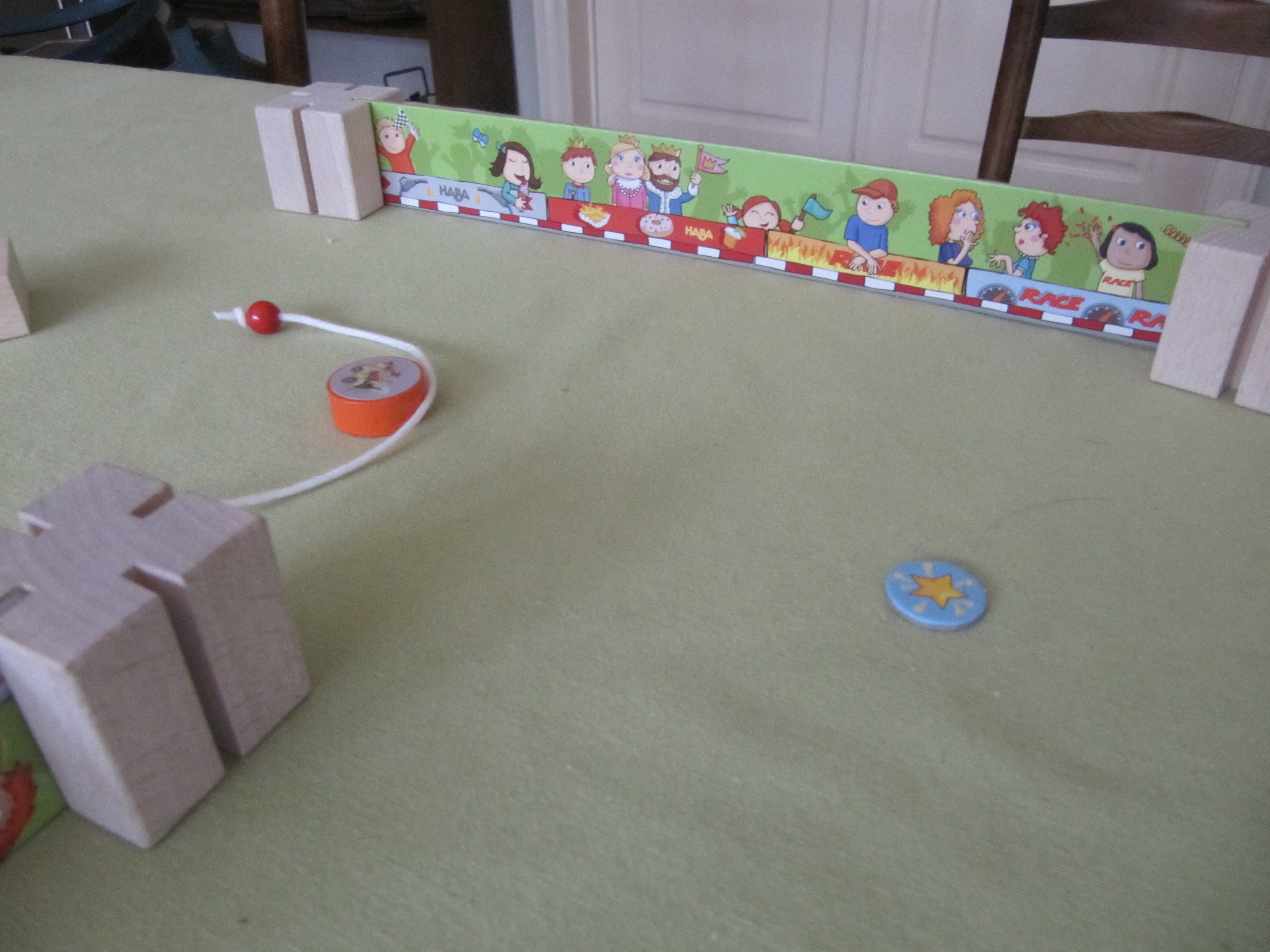 L’autre chose qui frappe et qui est une des marques de fabrique d’Haba, c’est la qualité du matériel: de splendides panneaux qui délimitent le terrain tenus par des blocs en bois on ne peut plus solides. Grâce à ce matériel foisonnant, vous allez pouvoir créer des circuits différents.