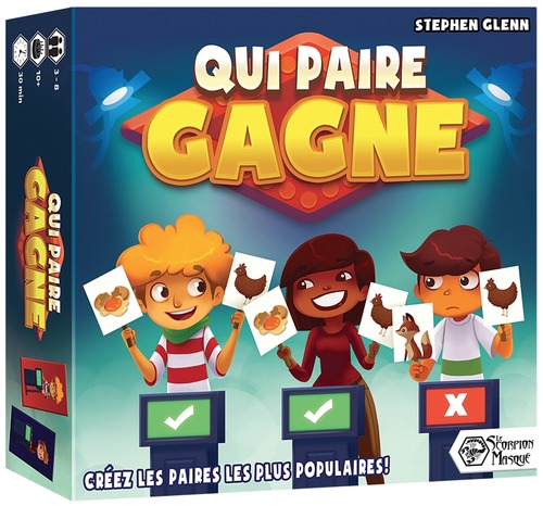 Qui paire gagne se base sur exactement le même principe qu’Unanimo. On place 11 cartes images en face de chaque numéro. Puis les joueurs ont le temps d’un sablier pour établir 5 paires de cartes qui selon eux vont ensemble en laissant une carte seule. Ensuite, chaque joueur va lister chacune de ses paires et va gagner autant de points que de joueurs ayant établi la même paire. Les joueurs ayant mis de côté la même carte solitaire gagne eux le double des points pour cette carte.
