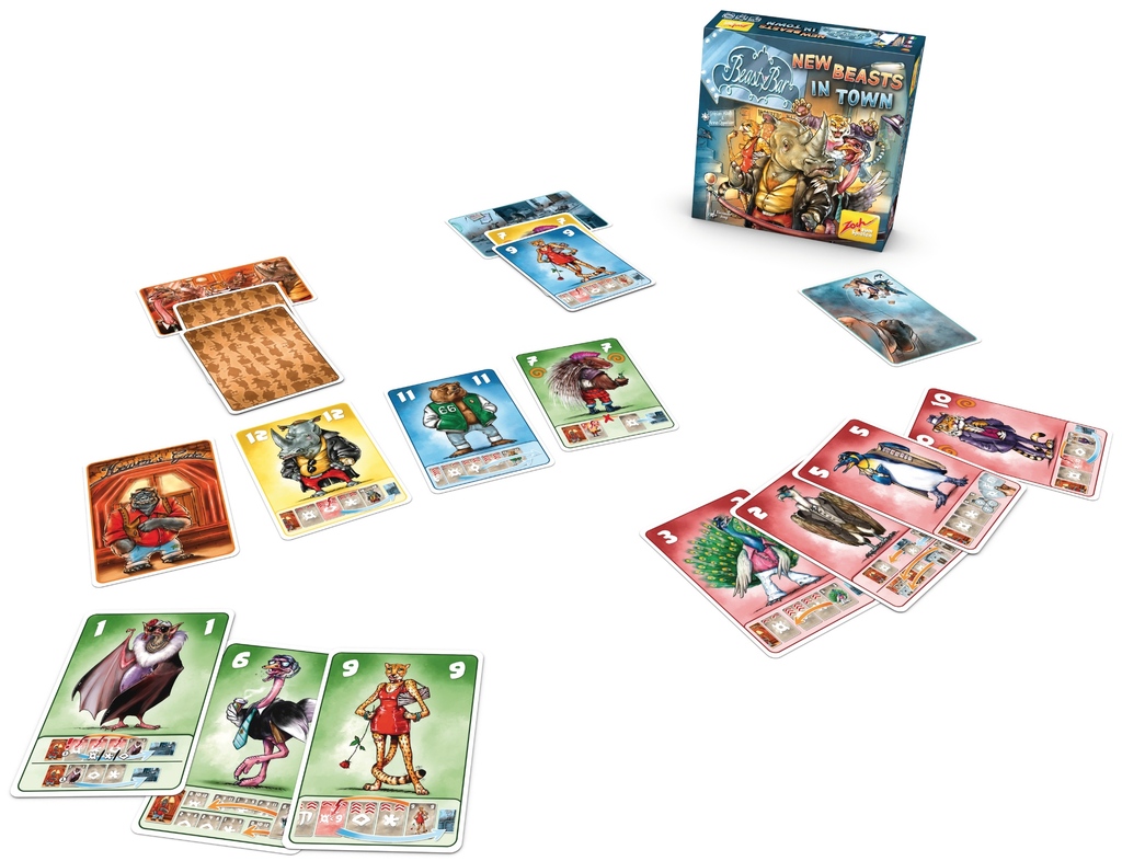 Beasty Bar: New Beasts in Town est une deuxième petite boîtes, suivant le premier Beasty Bar sorti en 2014, qui reprend exactement la même mécanique mais avec d’autres invités. L’éditeur déjà bien connu n’est nul autre que Zoch qui a déjà sorti pas mal de jeux familiaux tels que Avanti, Safranito, Mord im Arosa, Riff Raff, ou un peu plus comme Tobago, Enigma et plus récemment Mangrovia, ou encore les plus connus Pique Plume, Niagara. et Pickomino. Et ce pour n’en citer que quelques-uns.