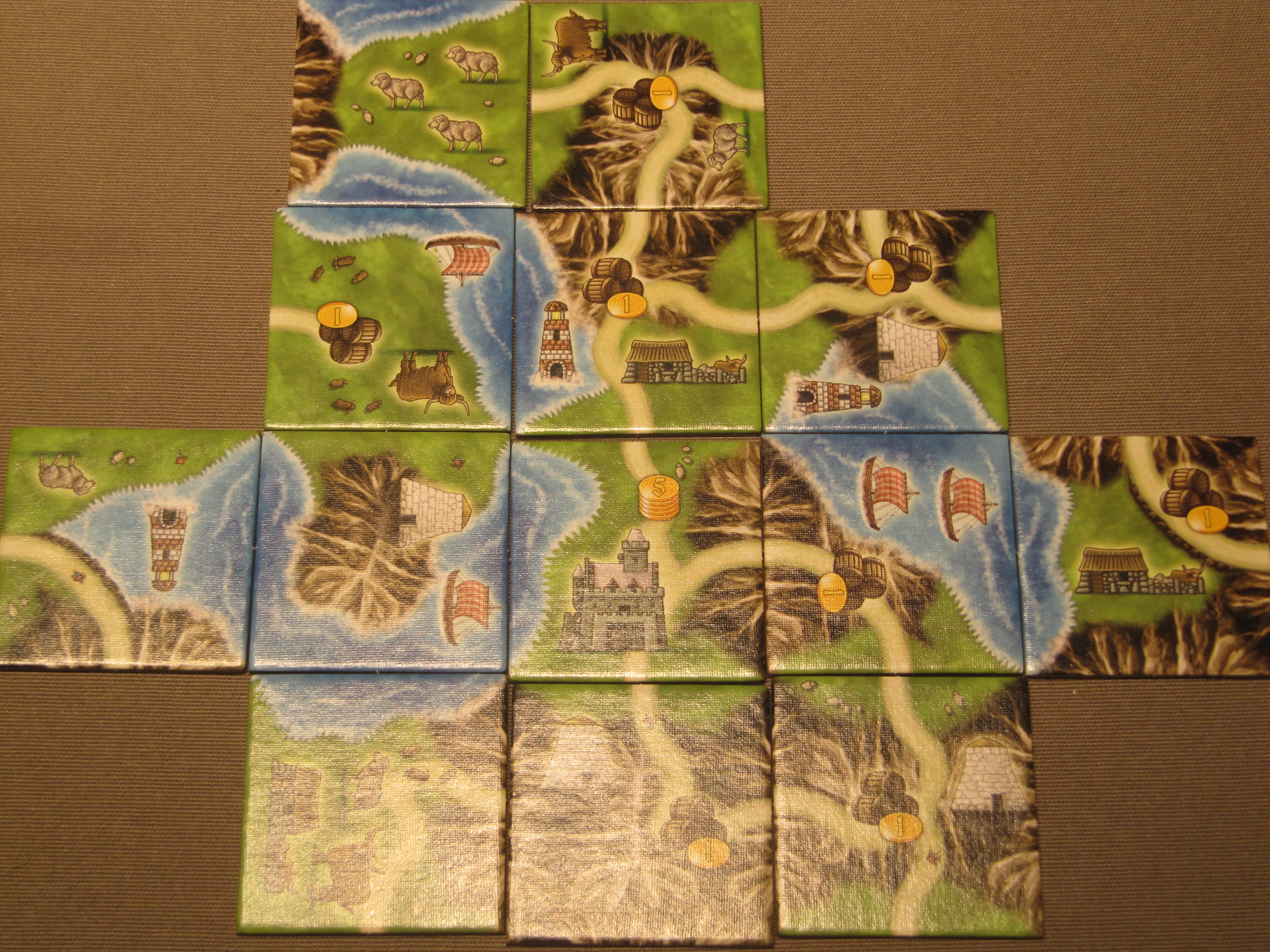 La gestion de l’argent est d’ailleurs primordiale pour pouvoir se prémunir des achats adverses et pour pouvoir se payer les tuiles adverses. Certaines tuiles indiquent un revenu en pièce que l’on reçoit au début de chaque tour. Mais pour bénéficier de ces pièces, il faut que votre tuile château y soit connecté par des routes. Quand vous savez que les routes ne vous rapportent aucun point, qu’il n’est pas obligatoire de faire correspondre les routes lors du placement des tuiles et que vouloir faire correspondre les routes va bien souvent en contradiction avec les PVs que vous pouvez gagner, vous avez déjà là un des dilemmes du jeu.