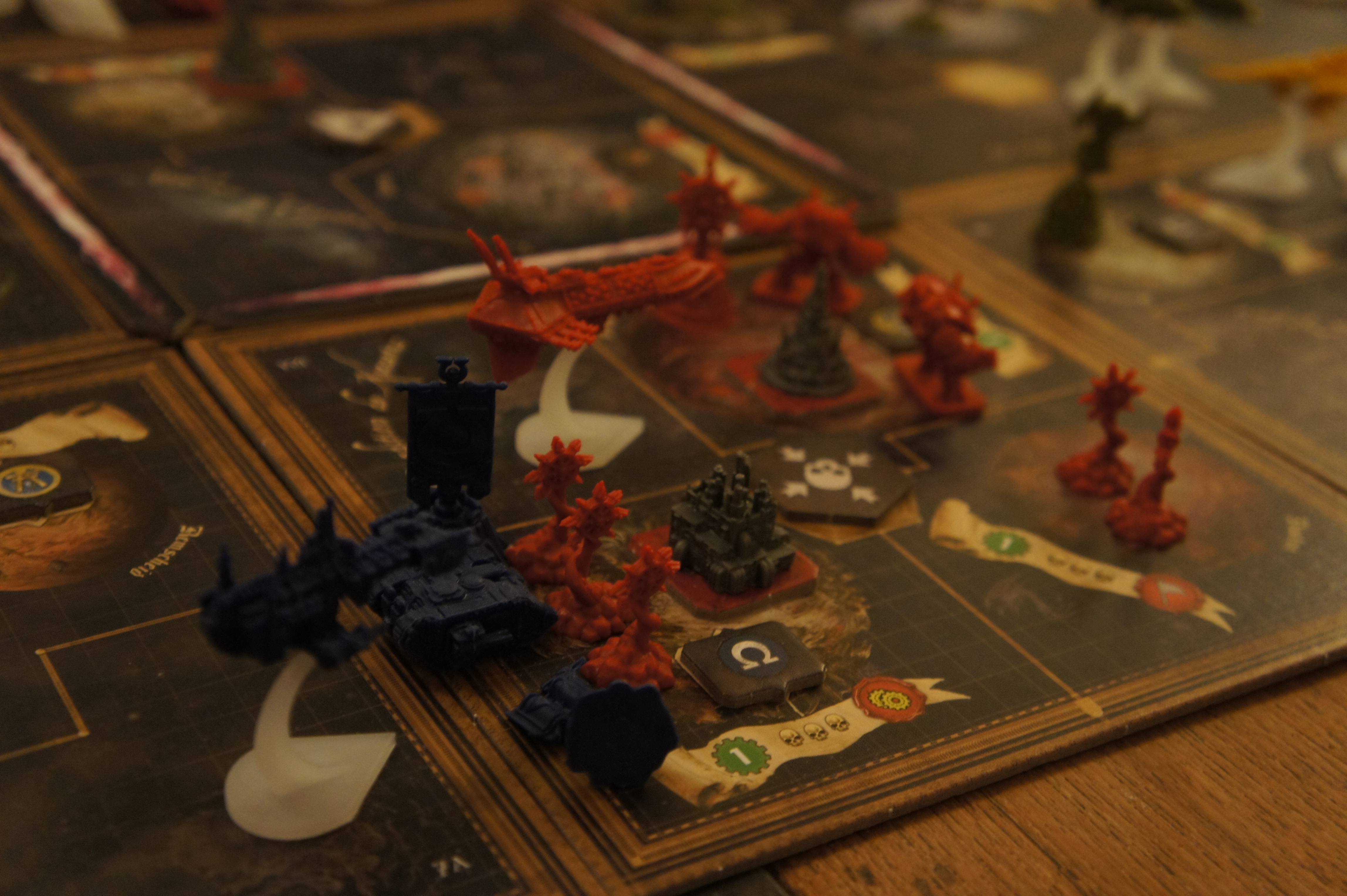 C’est un système extrêmement bien fait et original qui apporte un volet épique du plus bel effet. Il est extrêmement rare de voir le joueur le plus faible l’emporter mais l’issue du combat reste incertaine en matière d’unités détruites ou en retraite. Le désavantage de ce système est qu’il prend beaucoup de temps et je pense que Forbidden Stars aurait pu être raccourci à ce niveau-là.