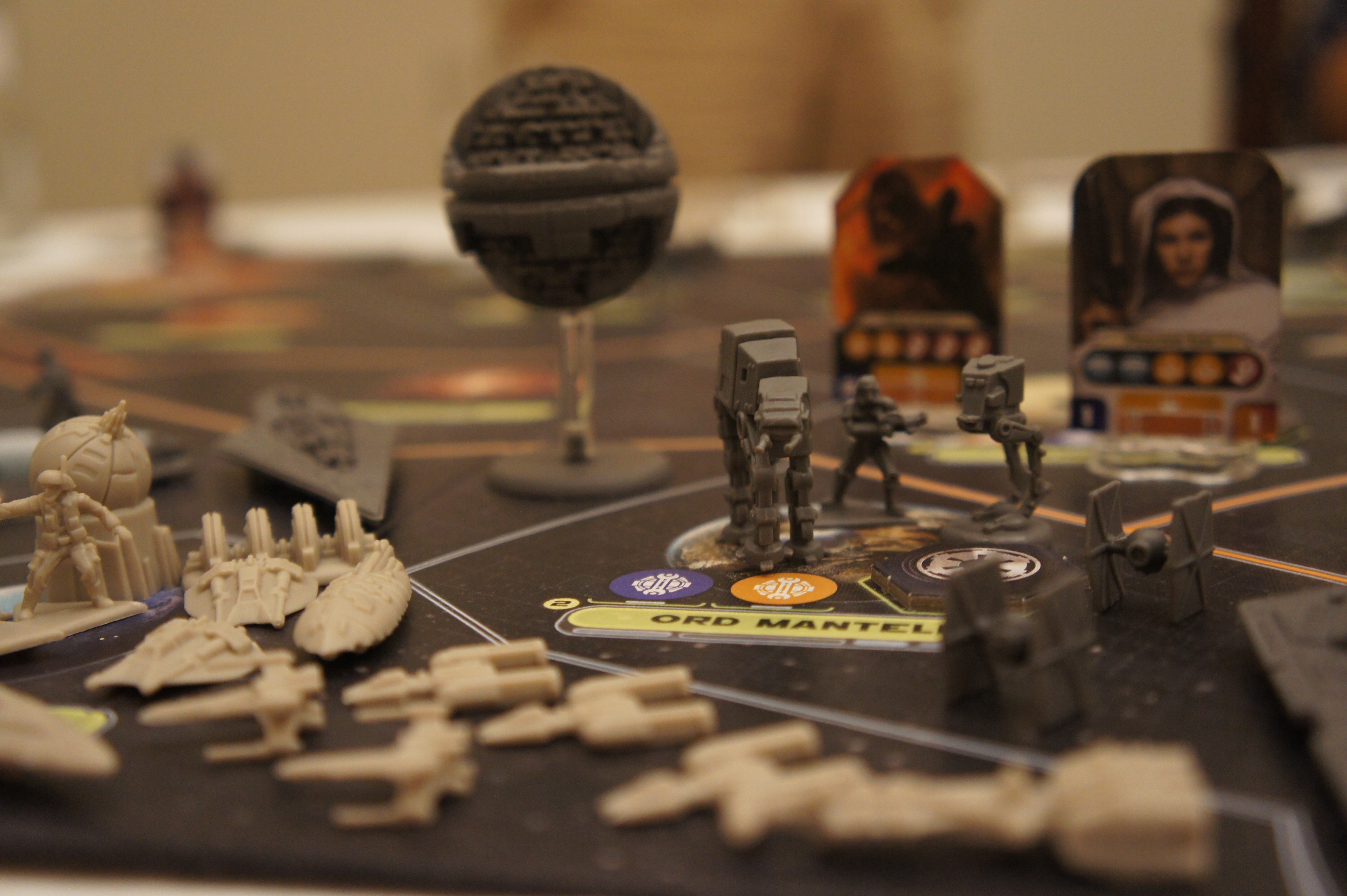 Star Wars Rebellion est fort orienté par les cartes.  A chaque tour, vous allez piocher 2 cartes missions.  Les rebelles vont également piocher une carte objectif.  Ces cartes missions vont vous donner des bénéfices si vous les réussissez.  Vous allez pouvoir convaincre des mondes d’allier votre camp, vous pourrez capturer des leaders ennemis, construire l’étoile noire et détruire des mondes avec elle, saboter des installations ennemies,…