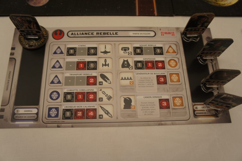 Cette spécificité des Leaders amène de la stratégie dans le choix des recrutements et dans leurs utilisations : les assigner à des missions (qui pour quelle mission ?), les utiliser pour déplacer nos forces militaires ou pour s’opposer aux actions adverses, tout cela avec un œil sur les leaders ennemis et leurs propres capacités. Cette mécanique est très bien pensée, c’est ludique et très thématique chassant le spectre de la répétitivité. Et chaque Leader est un personnage clef de la saga aux caractéristiques adaptées au dit personnage, du thème toujours et encore.