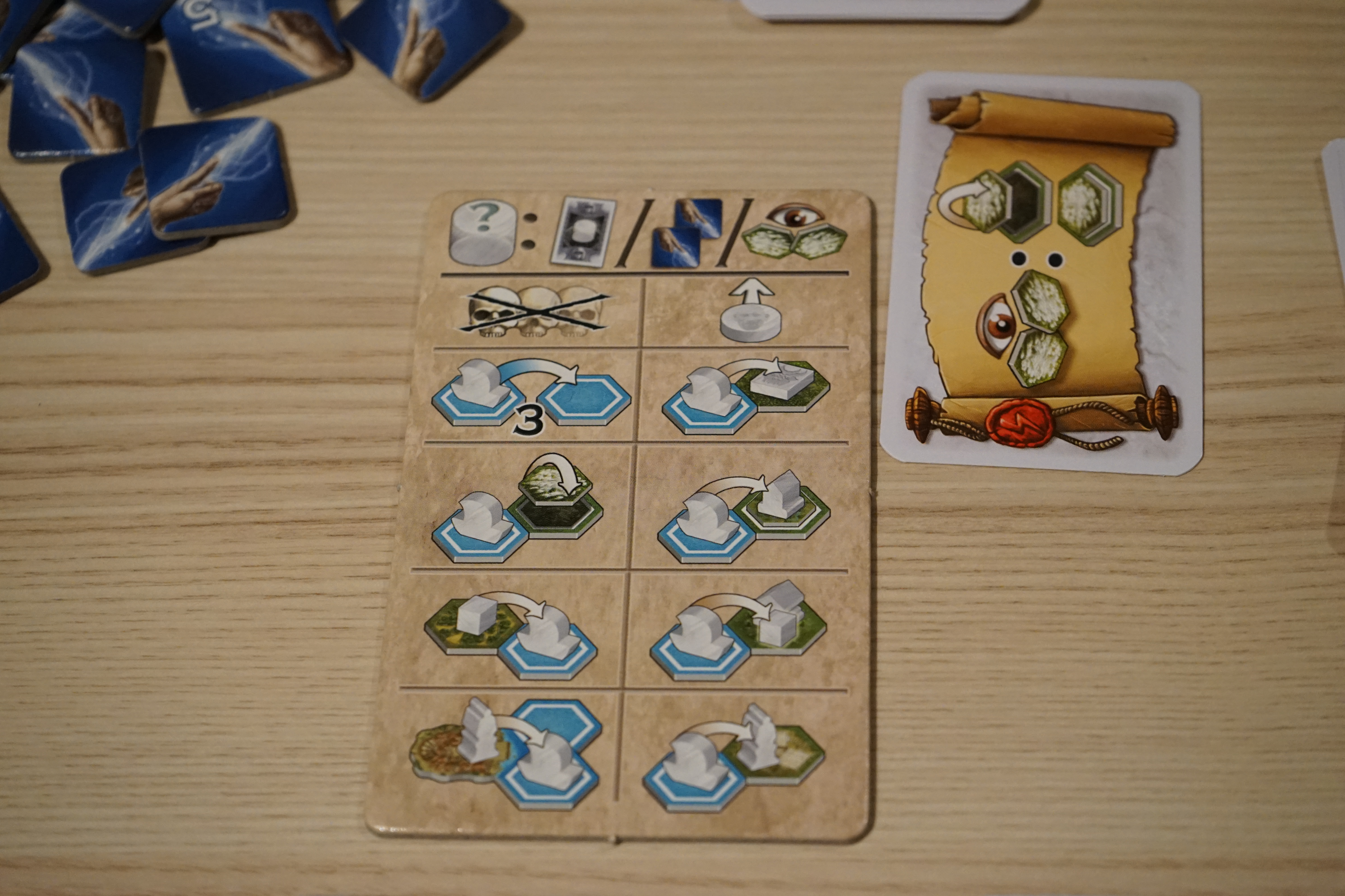 Chaque objectif, quand il est réussi, apporte un bénéfice.  Et ce qui est super bien fait dans Das Orakel Von Delphi, c’est que ces bénéfices sont super équilibrés.  Vous aurez intérêt à réussir certains objectifs avant vos adversaires mais cette course vous octroiera de petits bénéfices tandis que les objectifs les plus difficiles ou qui nécessitent moins d’empressement rapportent plus.  Cet équilibre est merveilleux et on verra une joueuse s’orienter vers certains objectifs en premier et suivre un ordre bien précis tandis que d’autres suivront d’autres enchainements.  Et chacune de ces stratégies est équilibrée par rapport aux autres et il est fréquent de finir dans un mouchoir de poche.1419-oracle-delph-2