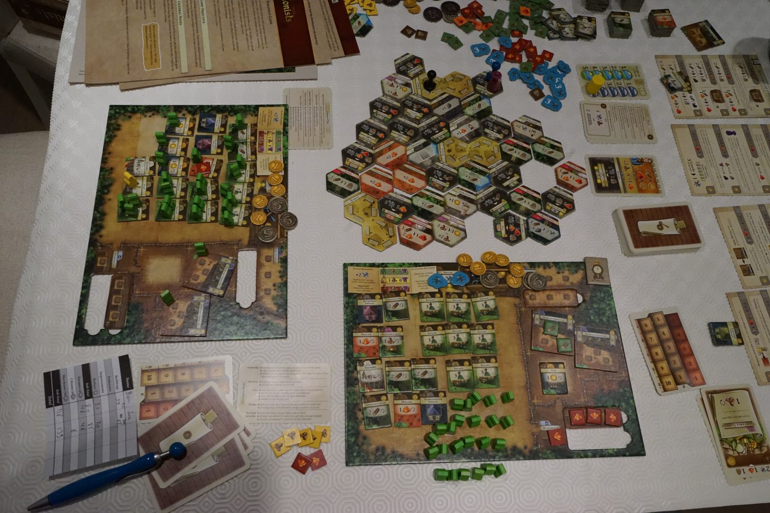 Non, franchement, The Colonists est excellent si on joue aux 4 ères consécutivement. On a d’ailleurs le sentiment qu’il a été fait pour ça et que c’est un artifice que d’avoir voulu le segmenter en différents jeux moins longs. Mais pour jouer au jeu complet, il va vous falloir du temps ! Comptez 6 heures de jeu, 1 heure d’explication et 1 heure de mise en place/rangement et votre journée ou nuit est remplie 🙂