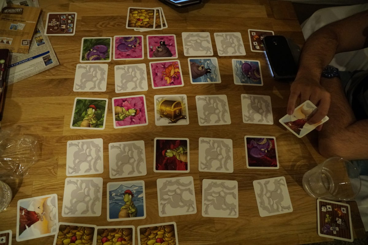 Au fur et à mesure de la partie on se surprend à se créer les mêmes combos pour tous les joueurs : quand on retourne telle carte, on retourne celle à côté ensuite, puis celle-là et puis celle-ci. Le truc rigolo c’est quand un joueur casse le combo en place et perturbe le joueur suivant. C’est vraiment très drôle et même s’il s’agit essentiellement d’un jeu de mémoire, on se surprend à trouver ce jeu fun, mêmes exclusivement entre adultes. Memoarrr n’est pas un simple jeu de mémoire !!!