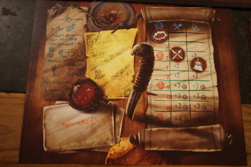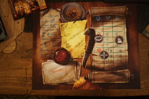 Le jeu se joue en 10 tours, symbolisés sur une horloge qui va de 22h à 1h du matin, soit le moment tout à fait logique où on se retrouve entre potes à la taverne. Parfaitement dans le thème à nouveau! A la fin on additionne les points de ses différentes commandes, on ajoute les points de son objectif secret reçu en début de partie (x points par commande avec tel ingrédient, x points par commande pour tel ou tel type de client) et en enlève les points négatifs sur la piste de réputation auprès de Nasty. Et celui qui a le plus de points gagne.