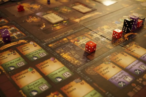 C’est un peu dommage que ces cases coûtent si cher et qu’il soit si difficile de les réaliser car ça déséquilibre un peu le jeu. Le plus bel exemple est le jeton premier joueur qu’il est intéressant d’avoir mais qu’il faut obtenir qu’avec un 7 (pas un 6 ni un 8 !!!), soit 2 dés minimum.