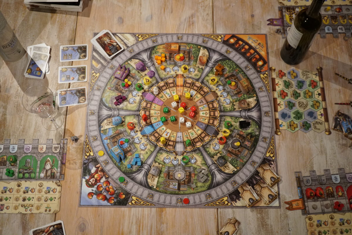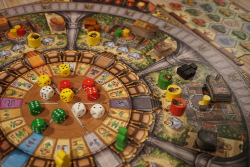 On saupoudre l’ensemble de décomptes intermédiaires valorisant le placement sur le plateau de ses conseillers, des majorités sur l’influence qu’on possède dans chaque province et sur le plateau annexe, d’un graal à récupérer permettant justement de gagner une majorité partagé, ou encore une petite extension permettant de s’octroyer des bonus d’actions complémentaires et on obtient un jeu très plaisant pour ceux qui aiment la programmation d’actions.