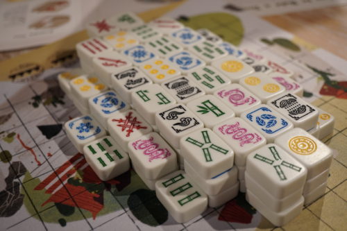 Tout comme Azul, Dragon Castle est un jeu abstrait et familial au matériel somptueux composé de tuiles émaillées. La couleur et les dessins des tuiles démontrent l’inspiration du Mahjong.