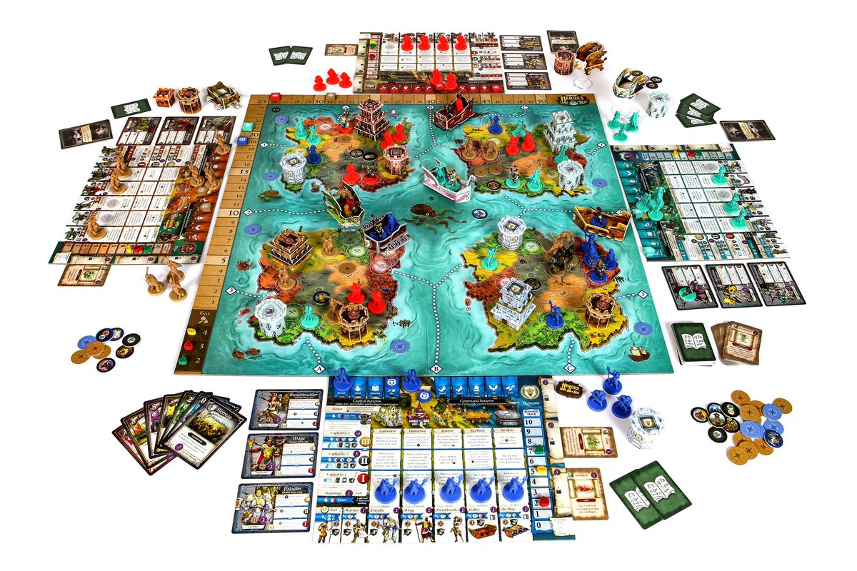 Mais alors qu’on aurait pu penser que, comme dans Sid Meier’s Civilization, la condition de fin de jeu nomme le vainqueur, dans Heroes of Land, Air & Sea, peu importe ce qui a déclenché la fin du jeu, celui qui l’emporte, est tout simplement celui qui a le plus de PVs. Et ça, nous les Européens, ça nous parle beaucoup plus que ces foutus jetons exploration 😉 Et on va gagner des PVs avec un peu de tout: