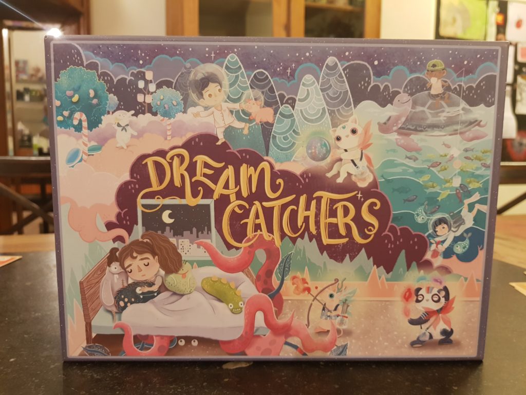 Dans Dream Catchers les joueuses vont donc incarner des chasseurs de rêve dont le but va être d’attraper les cauchemars, chasser les monstres et générer de beaux rêves pour faire en sorte que le sale moufle… le gentil angelot sur lequel on veille passe la nuit sans se réveiller. Le jeu est donc coopératif comme les plus futés d’entre vous l’auront deviné.