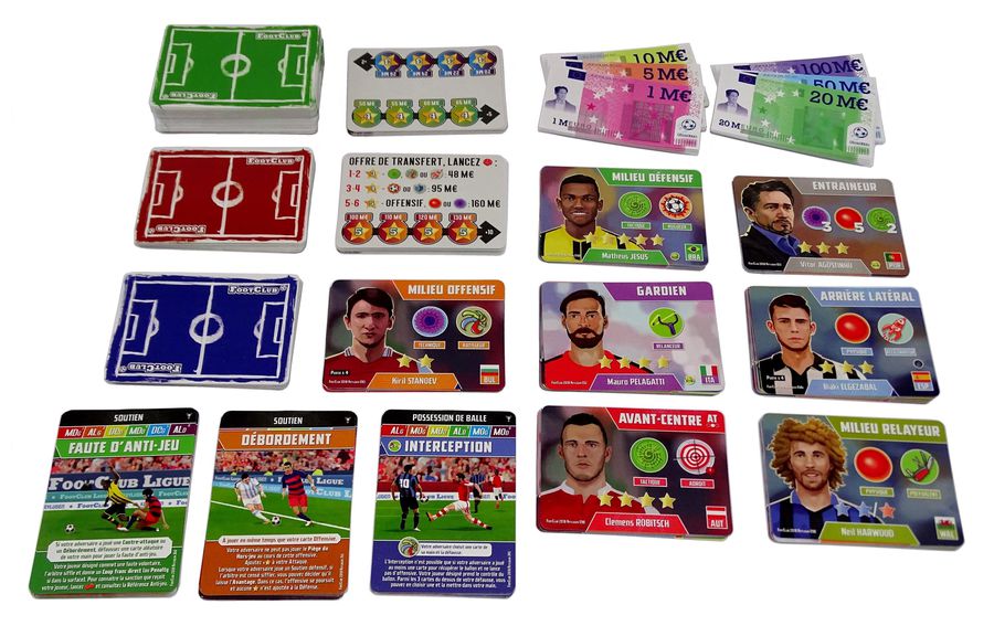 Et oui, cette extension introduit une mécanique d’enchères dans footclub.  2 fois durant la partie vous allez pouvoir acquérir des joueurs en les achetant via des enchères classiques (on pose son pion sur une piste d’enchère) contre vos adversaires. Vous débutez d’ailleurs le jeu avec un pactole de départ de 600 millions, faux malheureusement 😉