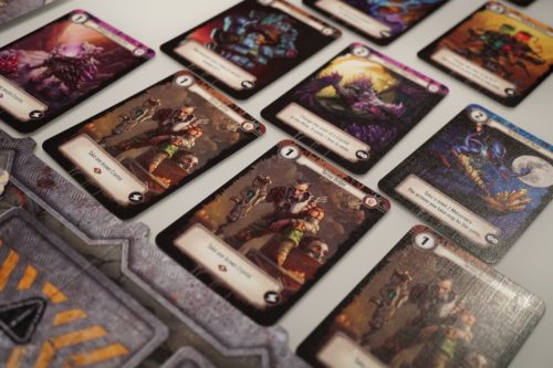 Ce mécanisme de raid est très original et assez subtil. Vous allez en effet devoir jouer de « grosses » cartes pour pouvoir recruter de gros mercenaires, récolter des cristaux bien chers ou collecter un artefact blindé de la mort. Mais vous n’avez pas envie que le voisin vous pique les cartes, de la bonne couleur en plus, que vous avez mis plusieurs tours à patiemment acheter… Ca met une énorme interactivité dans le jeu, car on doit toujours se demander si une autre joueuse ne va pas mettre son nez dans nos affaires. D’un autre côté évidemment quand on fait un raid on ne fait rien d’autre, donc on ne gagne pas de points. Mais d’un troisième côté (vous suivez ?) si vous vous faites piquer plein de super bonnes cartes vous pouvez attendre la bonne occasion pour les repiquer, ou en piquer d’autres… tout ça donne du bon plaisir ludique !