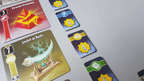 On enchaîne les déplacements, on prend ce qui nous intéresse en espérant que les autres n’ont pas choisi les mêmes objectifs que vous. Comme cela se joue quasiment à jeu ouvert, il suffira de prendre une carte convoitée par un autre joueur pour lui mettre des bâtons dans les roues. Bien entendu, il sera évident de viser une carte qui nous intéresse par la même occasion. Ainsi, si j’ai choisi les potions et qu’un autre joueur a choisi de faire les « 3 », j’ai tout intérêt à prendre les « 3 » de potion.