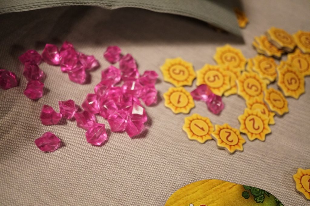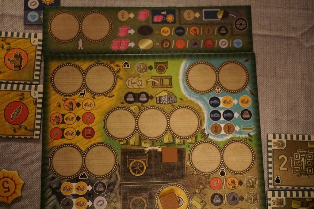 Les actions du voyageur vont non seulement permettre de vendre ou d’acheter des ressources contre des rubis, mais elles vont également permettre d’acheter des cartes apportant certains pouvoirs comme pouvoir vendre une certaine ressource au voyageur contre des PVs, pouvoir placer de la nourriture dans son entrepôt, pouvoir mélanger 2 ressources dans son entrepôt, pouvoir déplacer son pion une fois par tour gratuitement, pouvoir vendre du bois au marché,…