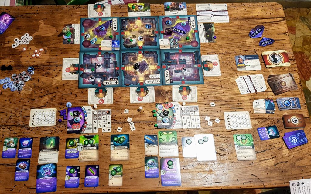 Le cœur du jeu est un système extrêmement bien fait de programmation d’action. La fiche personnage de chaque joueuse comporte 4 colonnes d’actions que vous allez progressivement remplir avec des tuiles action. Vous réaliserez les actions de 3 des 4 colonnes à chaque tour. Ce système de planification d’action est extrêmement bien foutu bien que, mixé avec des actions complexes et une multitude d’informations sur le plateau, il nourrit une certaine analysis paralysis dont on se passerait volontiers.