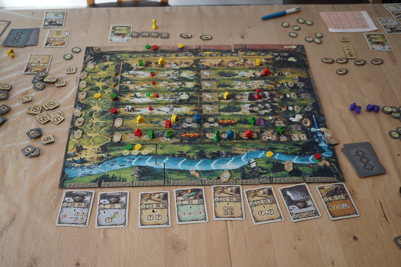 Après ces nouvelles parties, je diminue ma note d’un demi point juste parce que ces parties m’ont confirmé l’importance de la piste des chariots qui supplante les 2 autres tant elle offre la possibilité de réaliser des actions très puissantes. Les 2 autres pistes sont dès lors moins prisées, surtout la rivière qui n’offre étrangement, aucun bonus en PVs pour la joueuse qui est le plus avancée comme c’est le cas pour les 2 autres pistes.