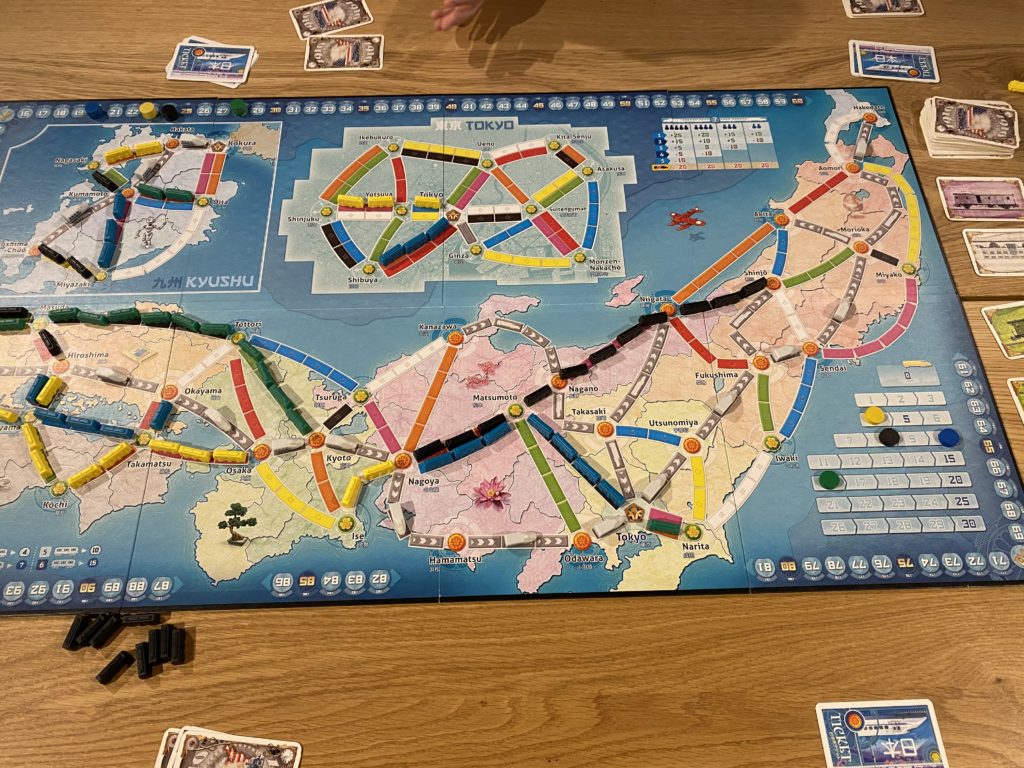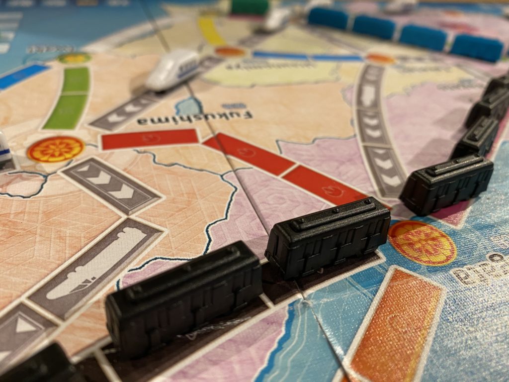Nous avons joué plus souvent à la version Japon. Cette idée de “ligne partagée” est intéressante. Cela rend évidemment le jeu moins “punitif” car la ligne est disponible pour tous les joueurs et traverse le Japon d’un bout à l’autre. Par contre, les trains rapides sont en nombre limité, et les joueurs n’ont que 20 wagons, ce qui compense un peu l’absence de l’aspect punitif et accentue la sensation de “course”. On aura aussi tendance à moins accumuler de cartes en main.
