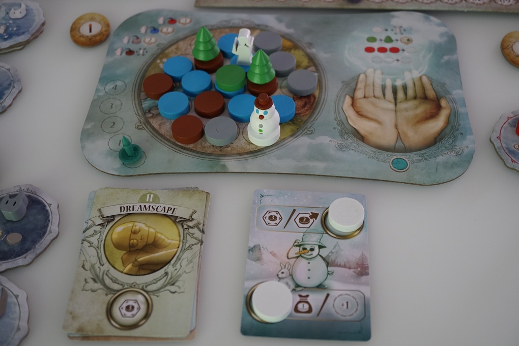 Dès qu’un joueur acquiert un jeton blanc dans ses mains, s’il n’a pas le bonhomme de neige dans son paysage, il le prend au joueur qui l’a et va rechercher un jeton blanc dans le sac. Il place ce fragment blanc dans son Dreamscape et y dépose le bonhomme de neige…