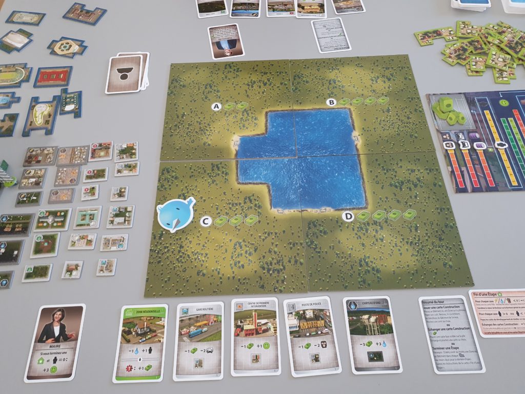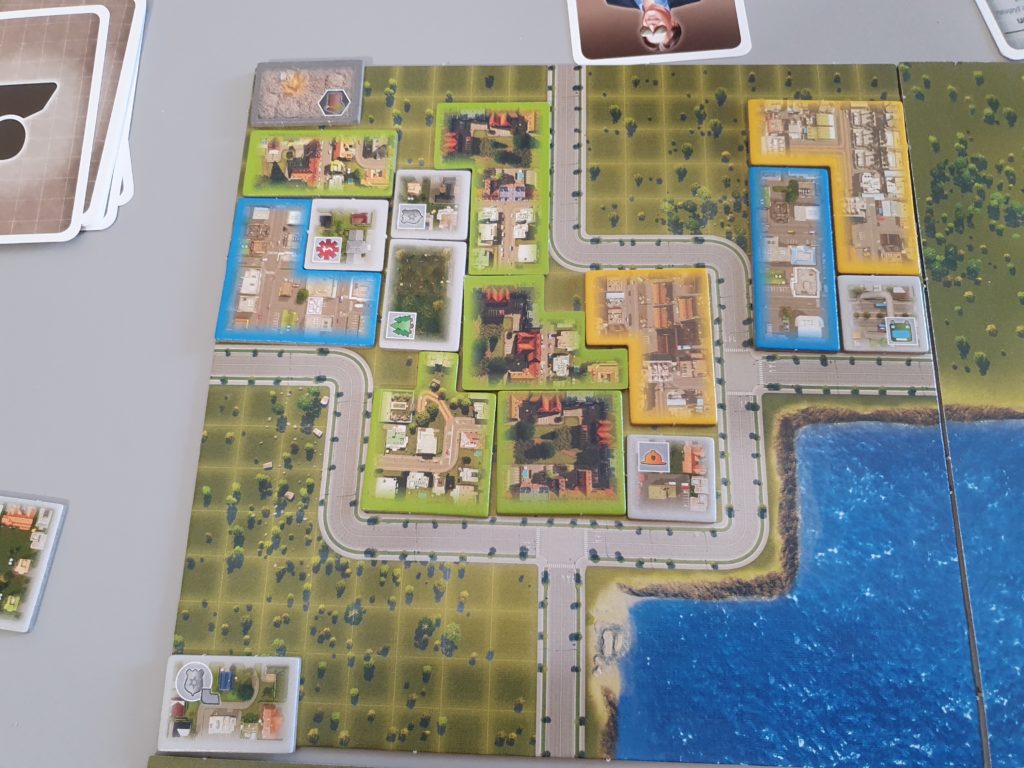 A cela s’ajoute également le choix des tuiles et leur emplacement respectif. Les services (pompier, hôpital, …) de niveau 1 ne pourront agir qu’à faible portée alors que les autres niveaux pourront faire effet dans tout le quartier où ils se trouvent. Non seulement, il faudra trouver les cartes qui permettent de les construire, mais il faudra aussi les placer au plus vite et au bon endroit pour les faire agir.