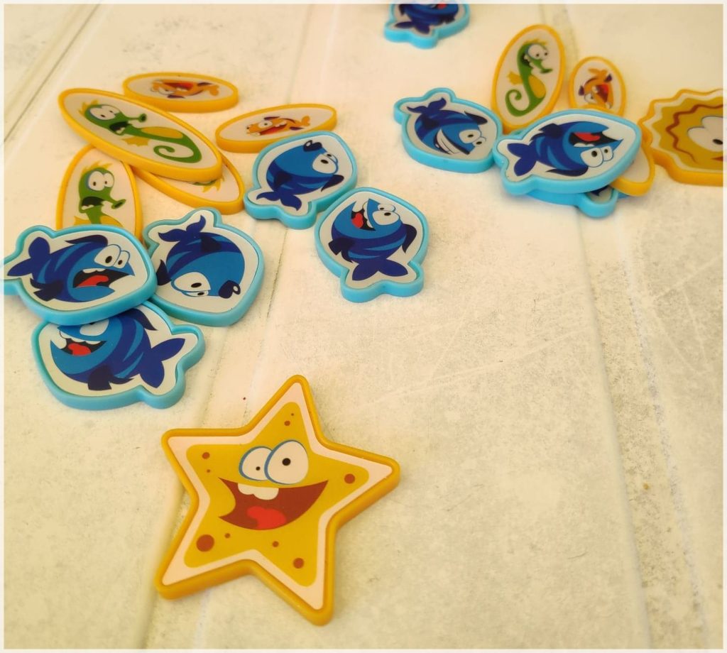 Alors oui, on pourrait se prendre au jeu de l’optimisation et s’évertuer à trouver le meilleur angle de descente des pièces de jeu au bout de quelques parties mais seuls les plus petits y trouveront un réel intérêt et ma foi, un plaisir non dissimulé à battre un adulte qui s’acharne en vain à s’appliquer à aligner ses propres poissons de couleur.