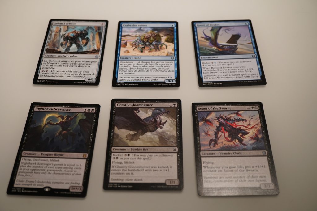 De nombreuses cartes vont également jouer sur le gain de points de vie et sur des effets qui en découlent comme ce clerc qui fait perdre un point de vie à l’adversaire à chaque fois que vous en gagnez ou la 3/3 volante qui gagner un marqueur +1/+1 à chaque fois que vous gagnez des points de vie.