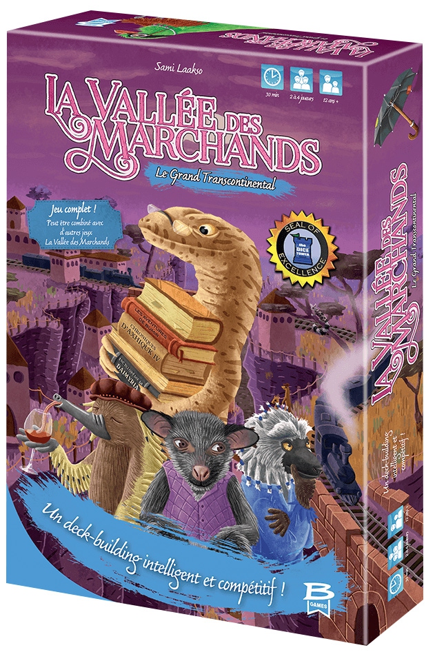 Cette nouvelle boîte de la Vallée des marchands peut, comme les précédentes, se jouer seul ou en la combinant aux versions déjà existantes. Les règles sont les mêmes, Le grand Transcontinental n’apporte que de nouvelles peuplades. On retrouve ce deckbuilding simple et intuitif qui est vraiment idéal pour jouer avec des personnes peu habituées à cette mécanique.