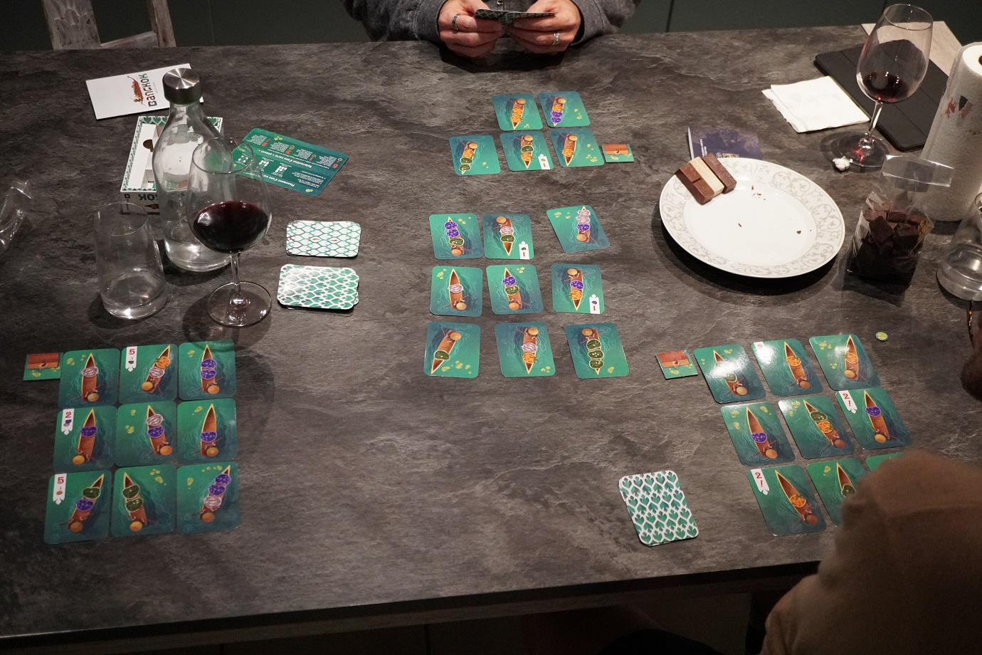 Evidemment, le hasard va aussi jouer dans une partie de Bangkok et si les cartes qui vous intéressent ne sortent pas, il vous faudra vous en passer! De plus, les choix de prise de cartes sont, eux, assez simples tant il est souvent évident quelles cartes sont les plus intéressantes pour vous. Enfin, Bangkok ne laisse pas beaucoup de place à la stratégie et est donc essentiellement tactique avec des choix court terme qui vont tenter d’optimiser votre puzzle personnel au mieux.