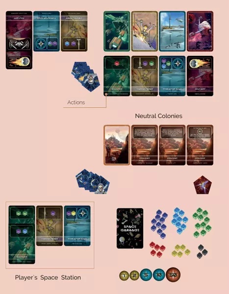 Space Expatriate est une aventure compétitive pour 2 à 4 joueurs qui vous transportera dans le monde des stations spatiales et des robots de terraformation pendant 30 à 90 minutes. Les joueurs agiront comme des entreprises et fonctionneront avec quatre jeux de cartes représentant des modules de stations spatiales portables de différents types : certains livrent des ressources de la Terre et les utilisent pour des expériences et des études, d’autres augmentent l’influence de l’entreprise sur la scène internationale. Le moment venu, un groupe de modules est désamarré pour une mission de colonisation qui apportera des avantages permanents et des points de victoire.