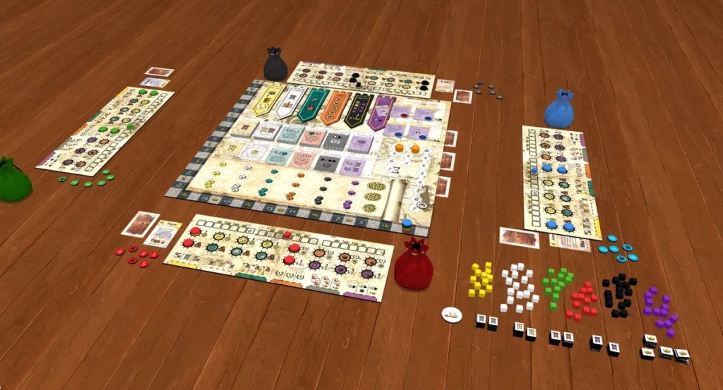 À Città-Stato, vous représentez une république maritime aux caractéristiques uniques et vous devez la faire ressortir en acquérant un plus grand prestige commercial, militaire et politique, tout en vous efforçant de développer et de maintenir les valeurs républicaines. Un bon score à lui seul ne suffira peut-être pas à gagner si vous ne pouvez pas préserver la nature républicaine ! Le mécanisme au cœur du jeu est le bag building : vous pouvez acquérir des cubes et les placer dans votre sac. A chaque tour, vous piochez plusieurs cubes, et selon leur nombre et leur couleur, ils permettront différentes actions. Le jeu dure sept tours, et chaque tour les joueurs peuvent continuer à jouer des actions jusqu’à ce que tout le monde ait passé. Les cartes d’action augmentent les choix disponibles, et les joueurs peuvent découvrir de nombreux combos intéressants s’ils ont bien planifié !