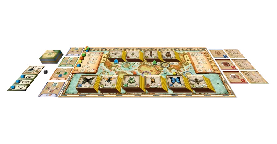En tant qu’entomologiste, vous affronterez d’autres joueurs pour collecter la plus belle et la plus intéressante collection d’insectes au monde. À chaque tour, vous pouvez choisir deux cartes insecte ou cible pour obtenir le plus de points. Chaque entomologiste ou voyageur montrera et facilitera certains de ses objectifs selon l’ordre des insectes et les endroits où ils se trouvent dans le monde.