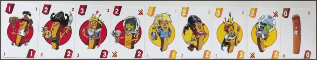 Autant vous dire tout de suite moi c’est Mayo 😉 (même si tout le monde s’en moque) ! Mais là n’est pas le problème, dans BF, chaque joueur prend en main une série de 9 cartes « frites » de valeurs et d’orientations différentes mais dont le dos de la carte est de la même couleur.