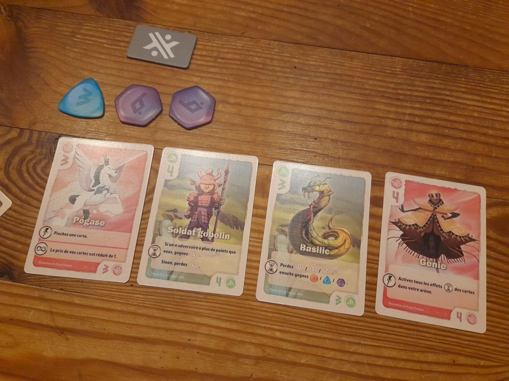Si je dois donner une amélioration possible, ce serait la lecture des cartes. En début de chaque manche, elles sont placées au milieu et chaque joueur commence alors à lire le texte de leur pouvoir. Ceci dit, on en a discuté après la partie, je ne vois pas trop comment faire autrement sauf en étoffant l’icônographie, peut-etre.