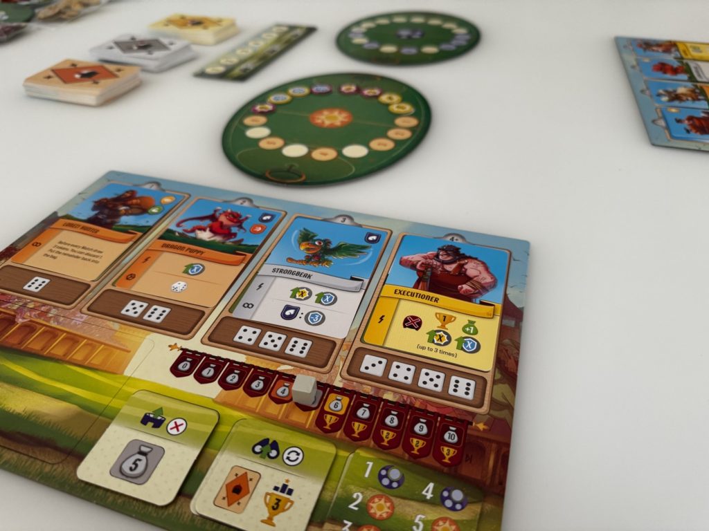 Les choix les plus intéressants dans Golden Cup sont les choix des cartes champion à jouer et vous le ferez en fonction des bonus qu’ils vous apporteront. Ils vont non seulement vous permettre de gagner de nouveaux jetons attaque et défense mais également vous permettre d’augmenter leur valeur, ils vous donneront des bonus si vous jouez certains types de champion, des dés additionnels à pouvoir jeter, augmenteront ves revenus à chaque manche, vous donneront des PVs, des bonus supplémentaires lorsqu’on augmente son revenu ou sa pioche de cartes champion, une défense ou une attaque supplémentaire permanente, la possibilité de retirer un jeton adverse du sac, la faculté d’ignorer certains jetons défense,…