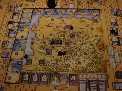C’est une photo prise vers la fin du jeu: mauve a 3 cités et noir aussi… C’est tout de même peu après 3 heures de jeu.