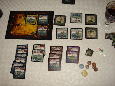Le plus réside dans l’île du borgne où les cartes ne s’achètent plus en ducats mais en sabres car il faut combattre le borgne. On doit veiller à pouvoir jouer sur les 2 tableaux tout en empêchant ses adversaires de la faire.