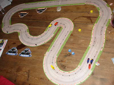Règles vraiment très très simplistes où chacun jette les dés et avance son petit bolide.