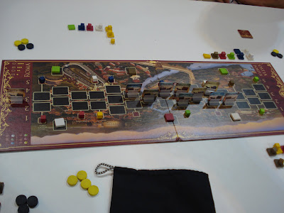 Strada Romana est un jeu sympathique où, à son tour, on déplace un ou 2 chariots dans le but de récolter des trucs en bois qui nous feront gagner des points de victoire.