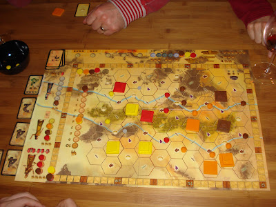 Après le choix des cartes, on place nos huttes sur le plateau et là encore les choix sont difficiles: place-t-on nos huttes pour des points de victoire ou pour des chameaux ou pour bloquer les autres joueurs?