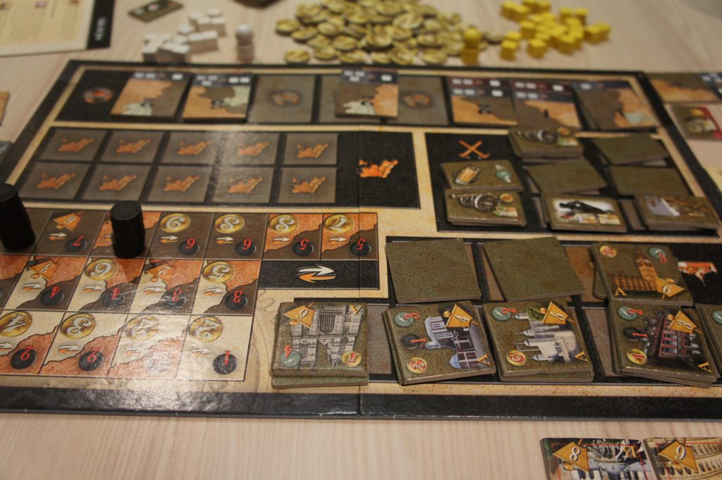 Les choix sont cornéliens et il n’est pas rare qu’un joueur réfléchisse longtemps avant de jouer. Ce qui est un des principaux reproches qu’on peut faire au jeu: les tours durent longtemps, on attend longtemps avant de pouvoir jouer et les jeu dure longtemps (notre partie a duré 4 heures à 3 joueurs + 3/4 d’heure d’explication des règles, quasi 5 heures tout compris).