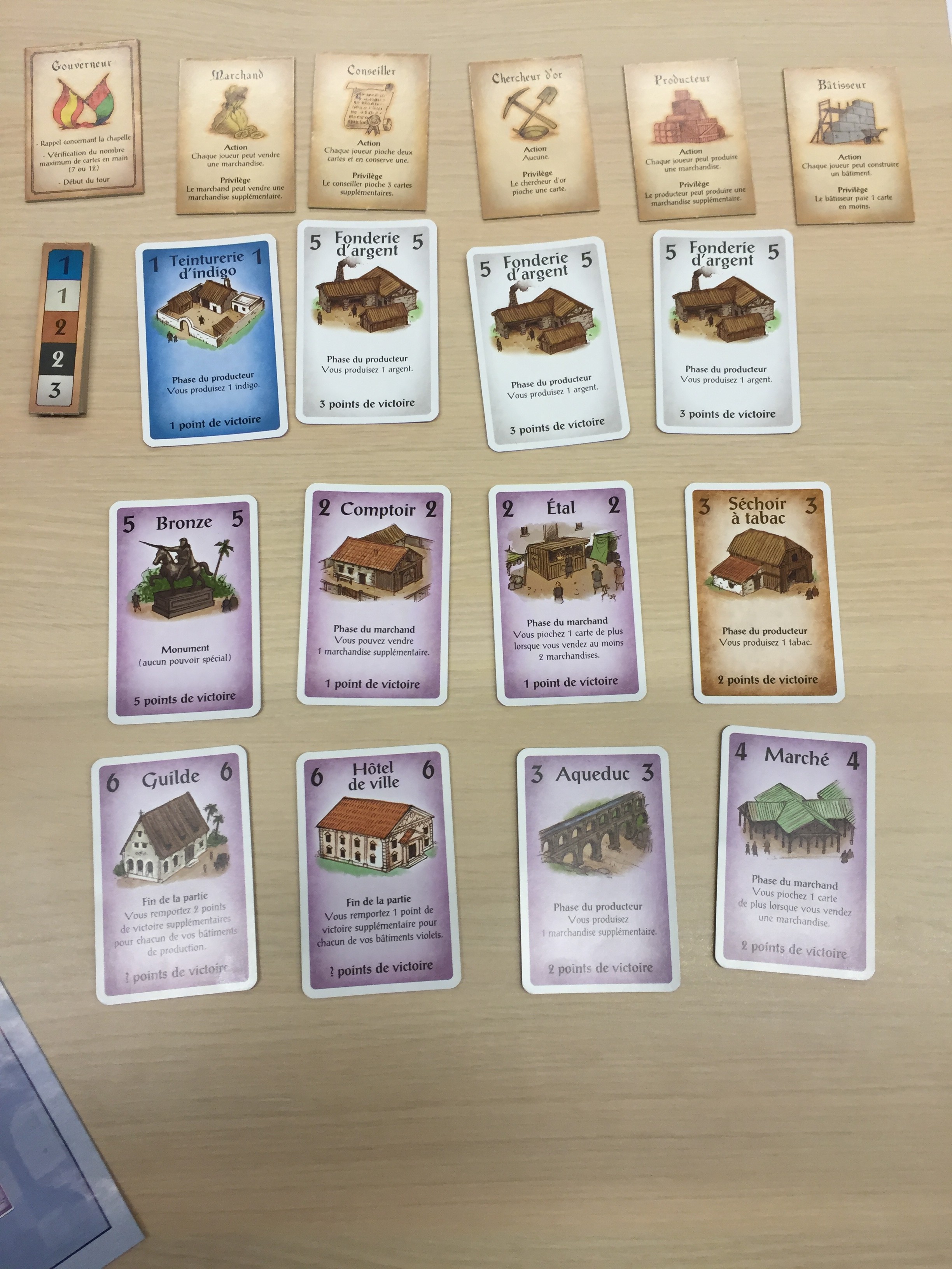 – Quel rôle vais-je choisir ?  Le choix est assez simple tant il dépend de votre situation : si vous avez beaucoup de cartes en main, il faut choisir le bâtisseur, si vous n’en avez pas beaucoup, il vaut mieux choisir le producteur puis le marchand,…