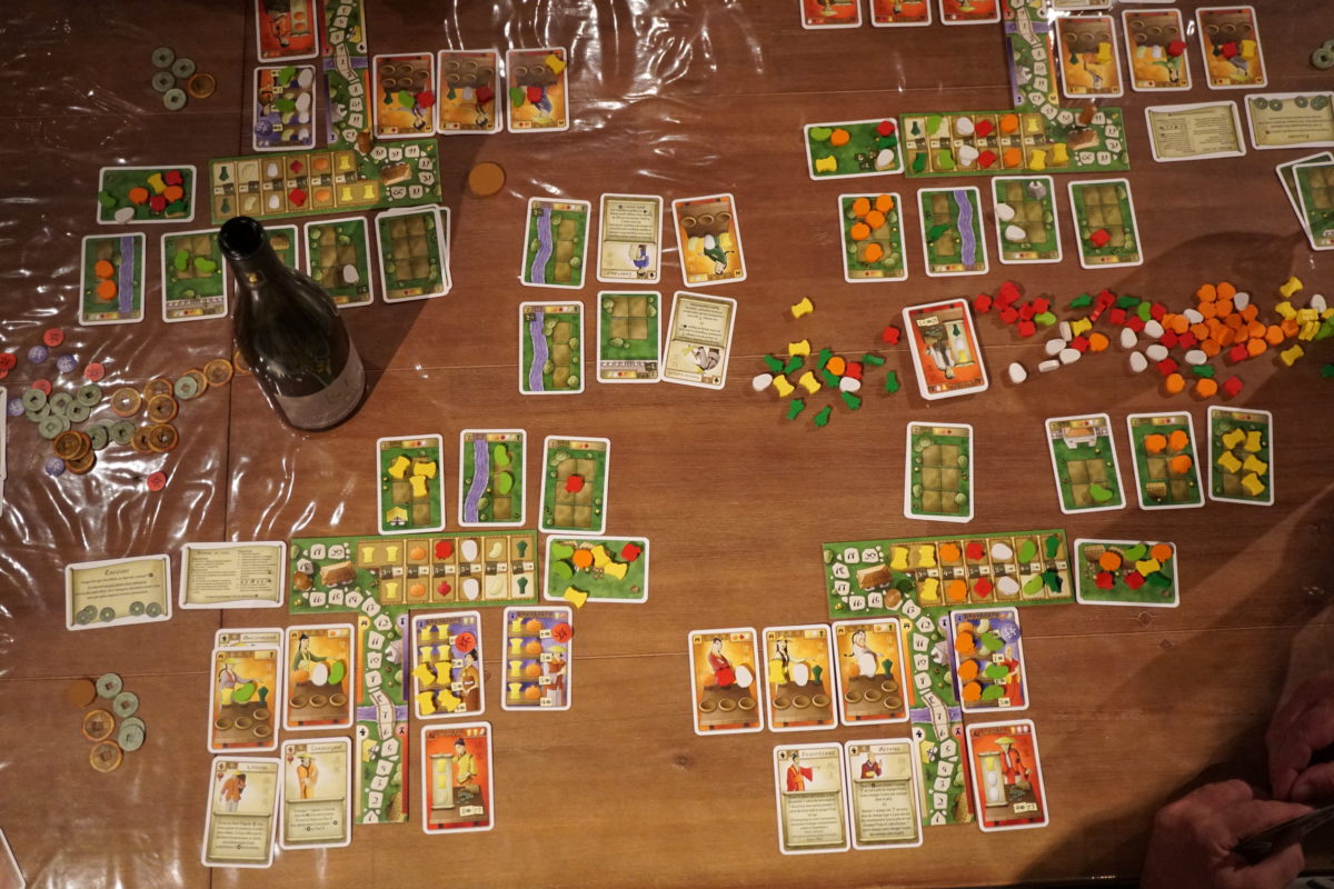 Notre partie de Loyang commence bien et le jeu semble plus que prometteur. Un jeu d’optimisation qui semble assez classique mais bien ficelé. Puis, au bout de quelques tours, le jeu commence à devenir répétitif. On se rend compte que les stratégies gagnantes se résument à une seule stratégie, et donc on passe un bon moment mais sans plus.