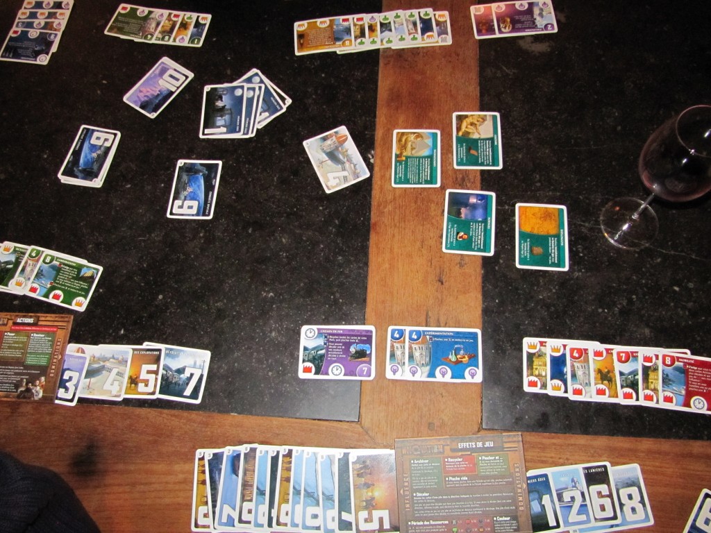 Dommage qu’à partir d’un moment dans la partie, quand il commence à avoir beaucoup de cartes dans les zones de jeu des joueurs, on ne sache pas bien lire les pouvoirs des différentes cartes adverses et donc pouvoir mieux anticiper leurs actions possibles… C’est un peu le reproche que je fais à Race For the Galaxy également.