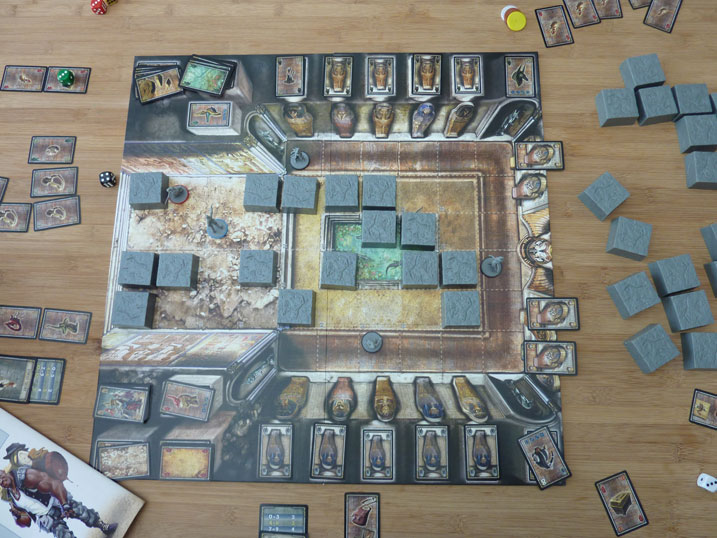 Bref, dans le temple ou dans le pyramide, le hasard est évidemment très présent. Dans la Pyramide d’Horus, pas vraiment de « pression » (comme avec la boule dans le Temple) pour sortir, ce qui permet aux joueurs de s’attarder plus longtemps dans leurs recherches. Dans le Temple de Chac, les pièges sont plus nombreux.