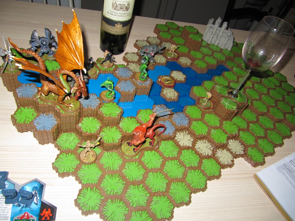 Ensuite, on tombe dans un jeu style Risk. On se déplace pour être à distance de tir et on attaque à coups de dés. Voilà. en très très bref l’impression que m’a laissé Heroscape.