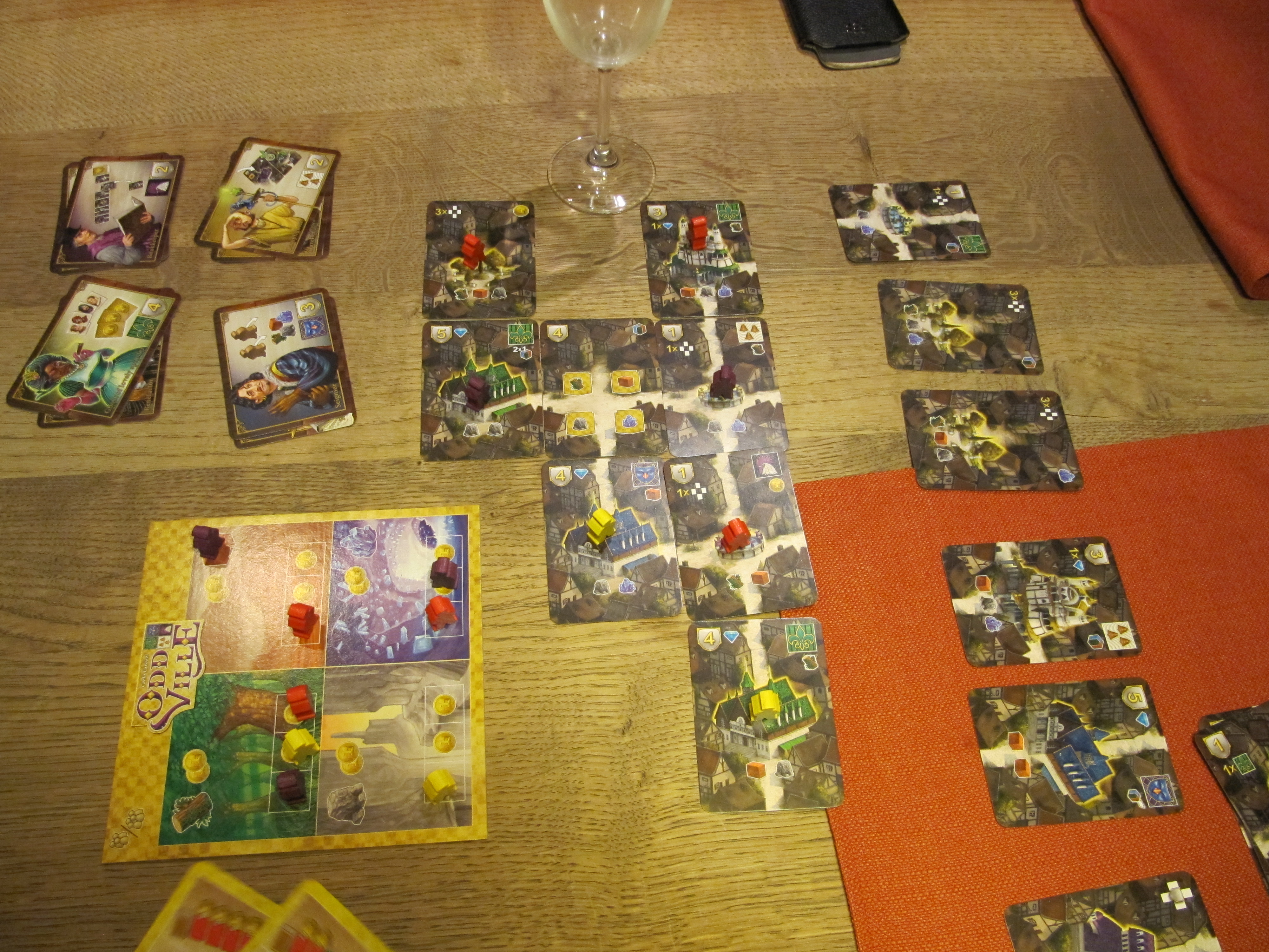 Odd Ville est la petite surprise de Essen 2012. Ce jeu petit format propose une mécanique peu innovante mais qu’on ne retrouve pas très souvent non-plus. On y retrouve de la gestion de ressources d’une manière innovante via un petit plateau de jeu. On y place un de ses pions qui restera là jusqu’à ce qu’on dépense la resource spécifiée. Ce « blocage » n’a pas eu d’impact sur notre début de partie mais en aura certainement plus tard, lorsque la fin du jeu approchera.